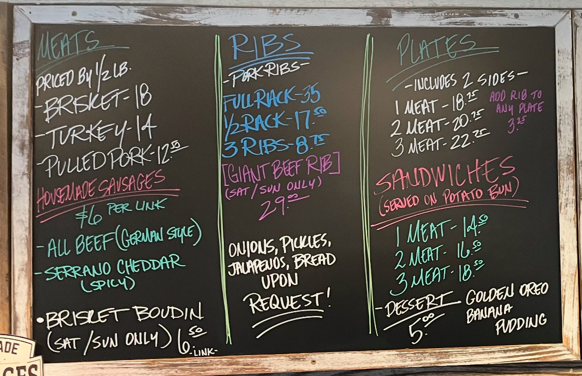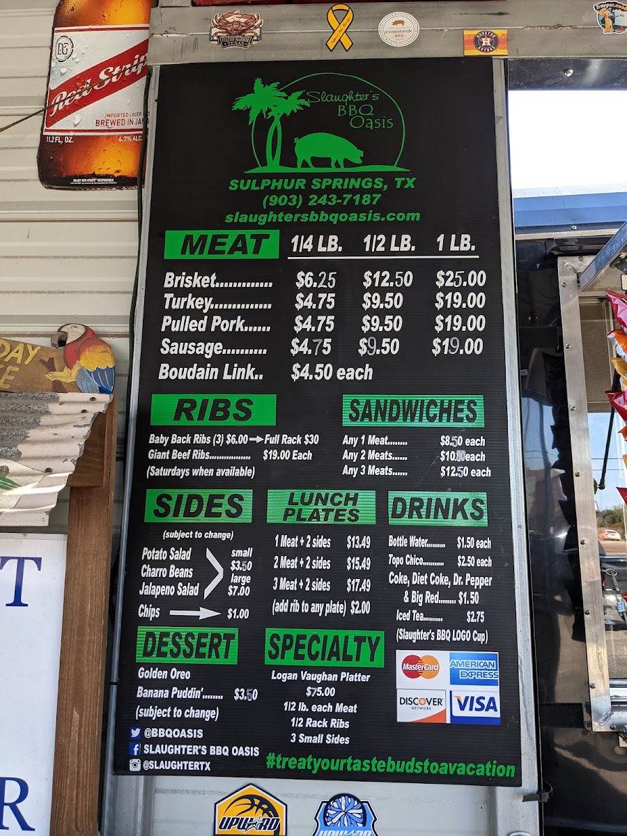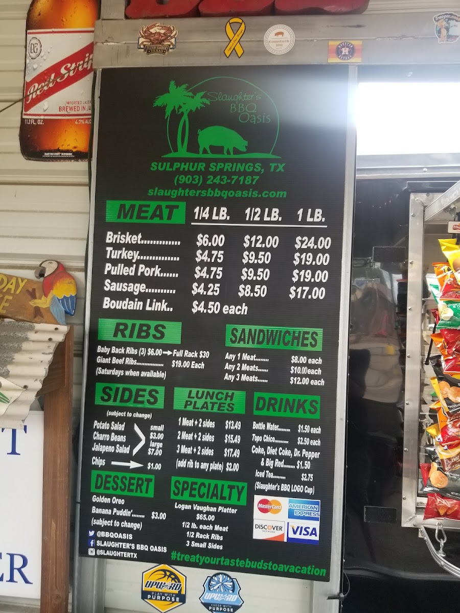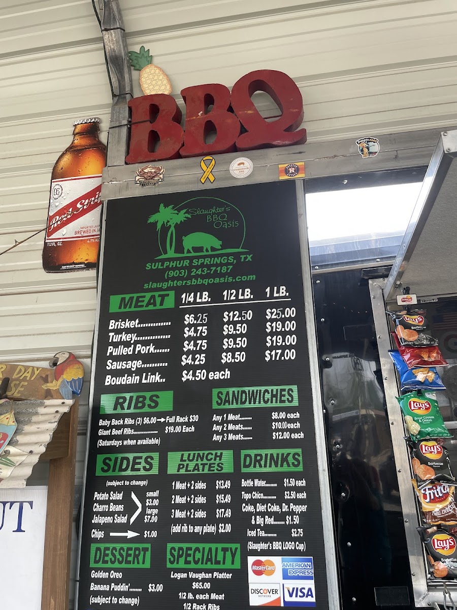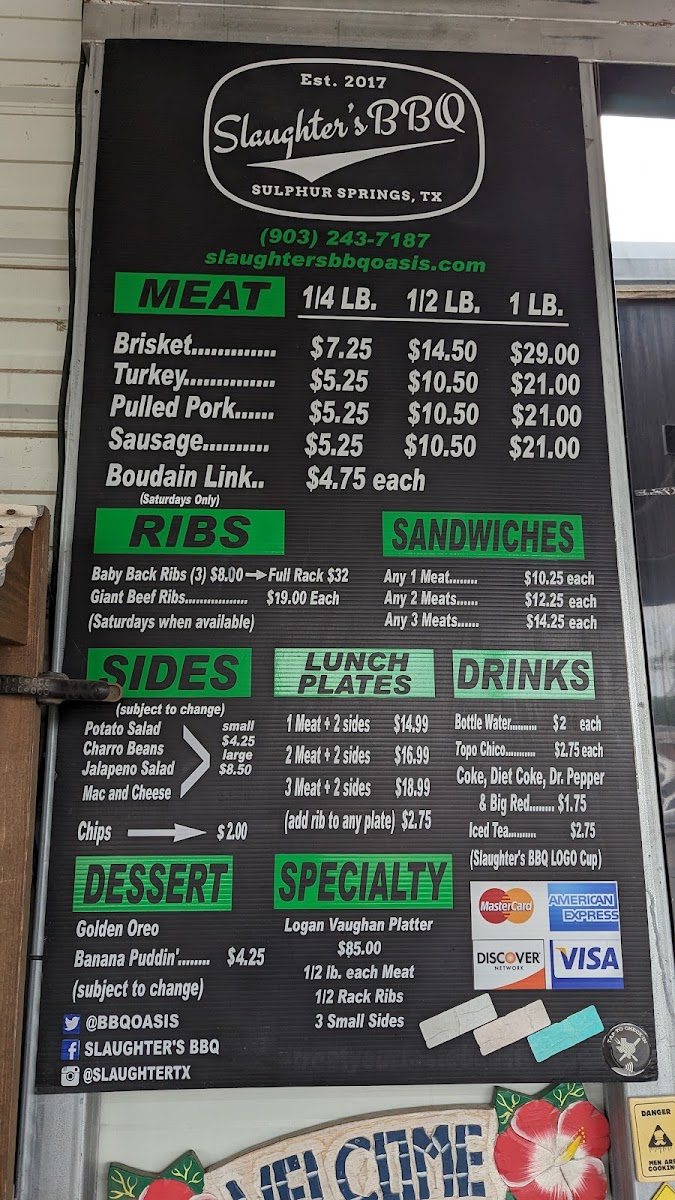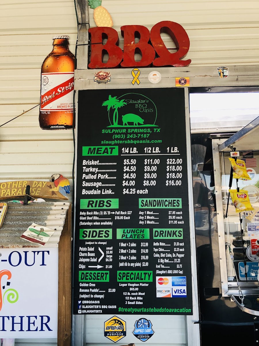 Slaughter's BBQ Menu